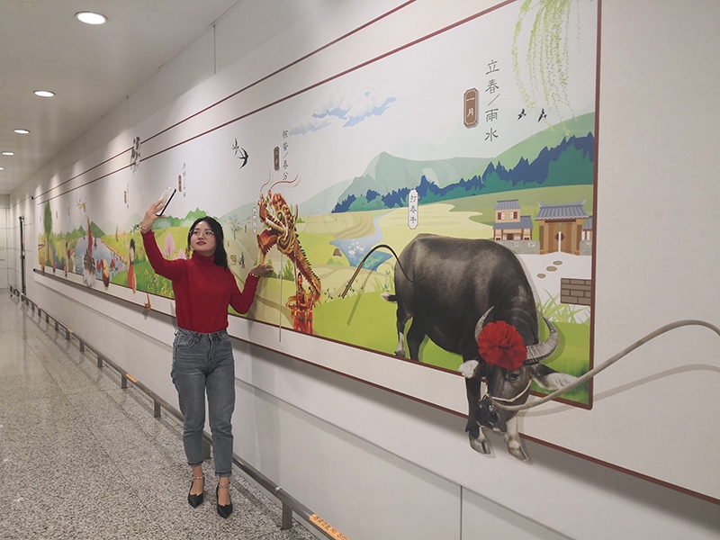 11月1日上午,航站樓首個(gè)3D立體藝術(shù)墻亮相T3航站樓出發(fā)層廁所通道。航站區(qū)中心在BW3007廁所通道以人類非物質(zhì)文化遺產(chǎn)——24節(jié)氣為主題,通過3D藝術(shù)手法栩栩如生地再現(xiàn)了賽龍舟、打春牛、植樹等民俗風(fēng)情,打造了本場首個(gè)兼顧觀賞性、文化底蘊(yùn)和互動(dòng)體驗(yàn)的3D立體藝術(shù)墻,也是今年“廁所革命”文化新舉措,引來了不少旅客合影留念。 (王源斌、任嘉婷)