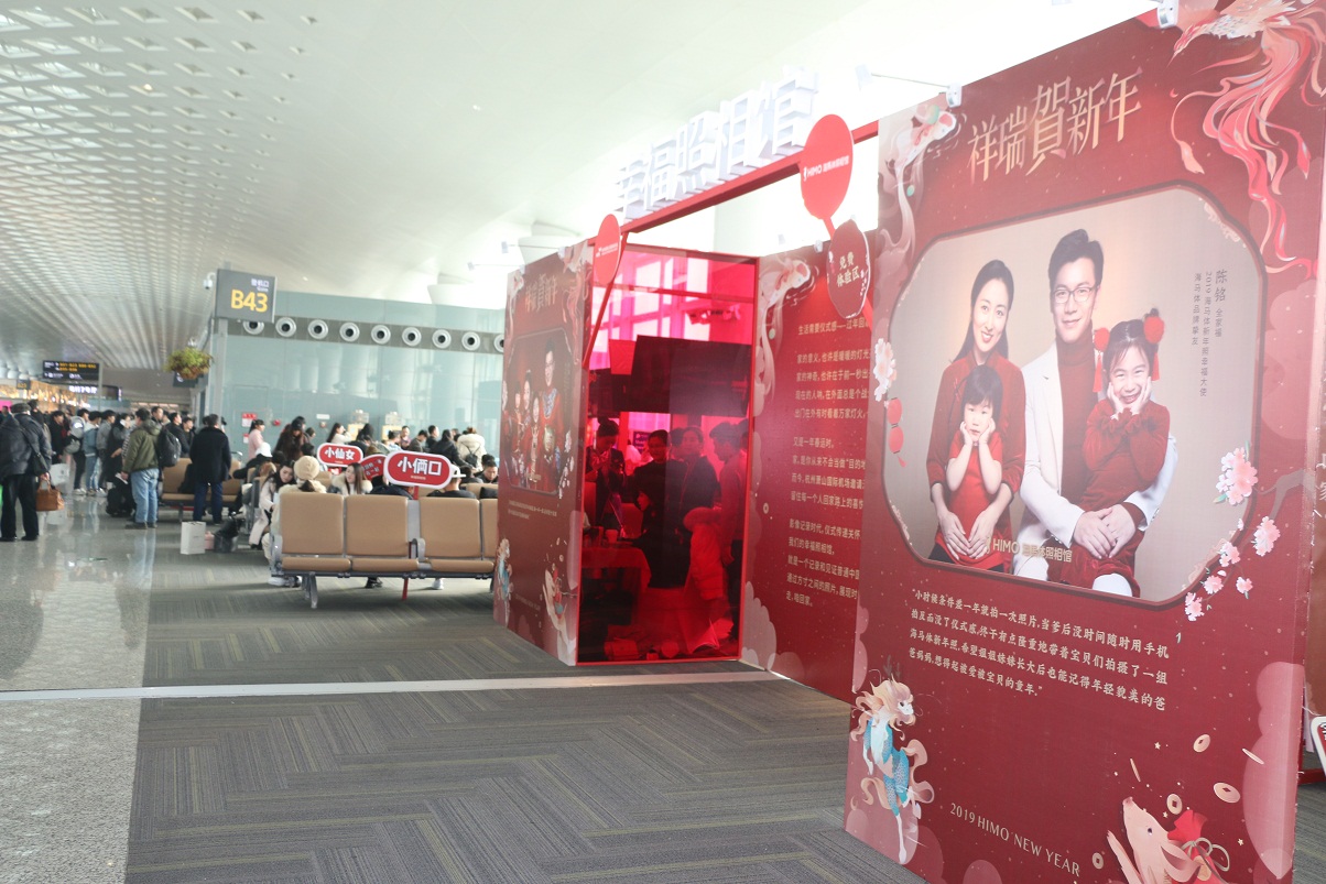 “幸福登機口”活動。1月21日至2月19日,在T3航站樓B43登機口打造了“幸福登機口”,特邀專業(yè)攝影團隊免費為旅客拍攝并打印新年全家福,記錄回鄉(xiāng)的幸福時刻。截至目前,活動已為近400個家庭的上千名旅客拍攝全家福照片。一張全家福,承載了春運旅客的幸福和溫暖,獲得了旅客的一致好評。