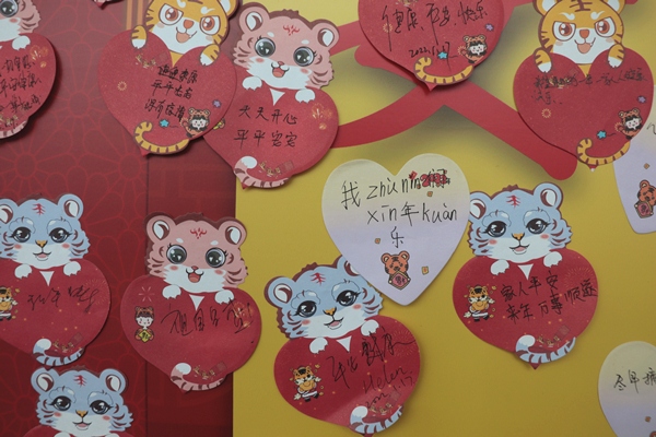 17日當(dāng)天,航站區(qū)中心聯(lián)合FM93浙江交通之聲,在T1航站樓出發(fā)大廳搭建以中國(guó)地圖為背景的噴繪墻,來(lái)往旅客用絲線牽引出對(duì)家的思念,用便利貼寫下新年愿望,共同完成這面“思念墻”。