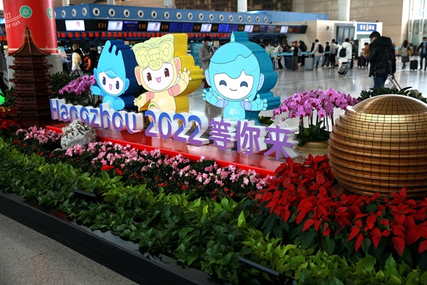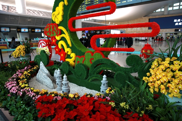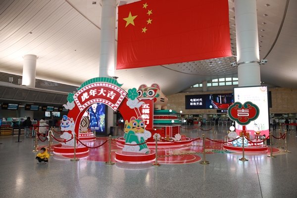 此外,為營(yíng)造新春節(jié)日氛圍,航站區(qū)中心在出發(fā)大廳G值機(jī)島設(shè)置了虎年新春主題景觀,并結(jié)合杭州地域文化特色、亞運(yùn)主題元素,在7號(hào)門、11號(hào)門等區(qū)域用綠化景觀打造“三潭映月”及亞運(yùn)主題特色景觀,旅客紛紛打卡留念。