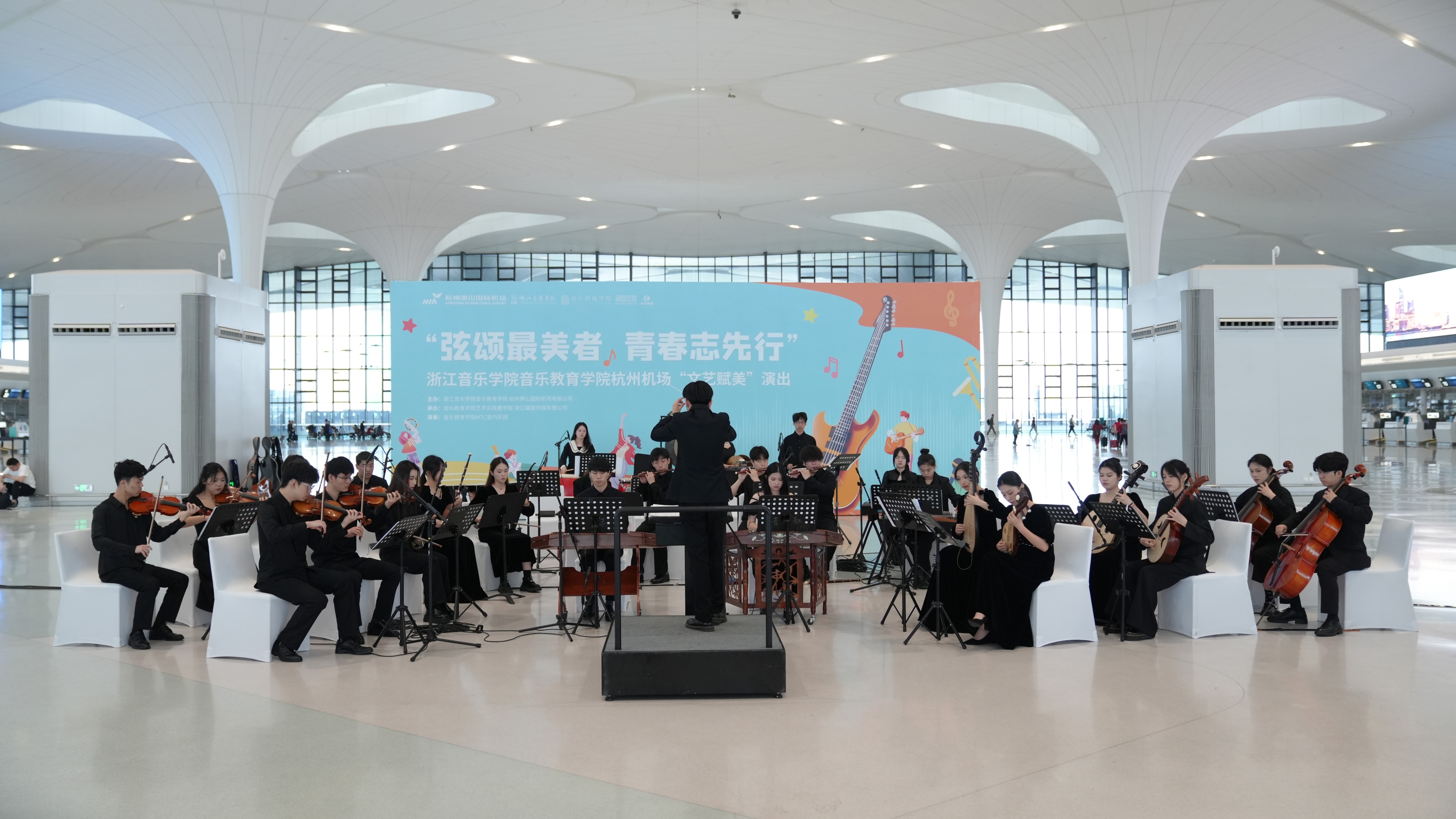 杭州機場舉辦“弦頌最美者 青春志先行”專場國樂演奏會