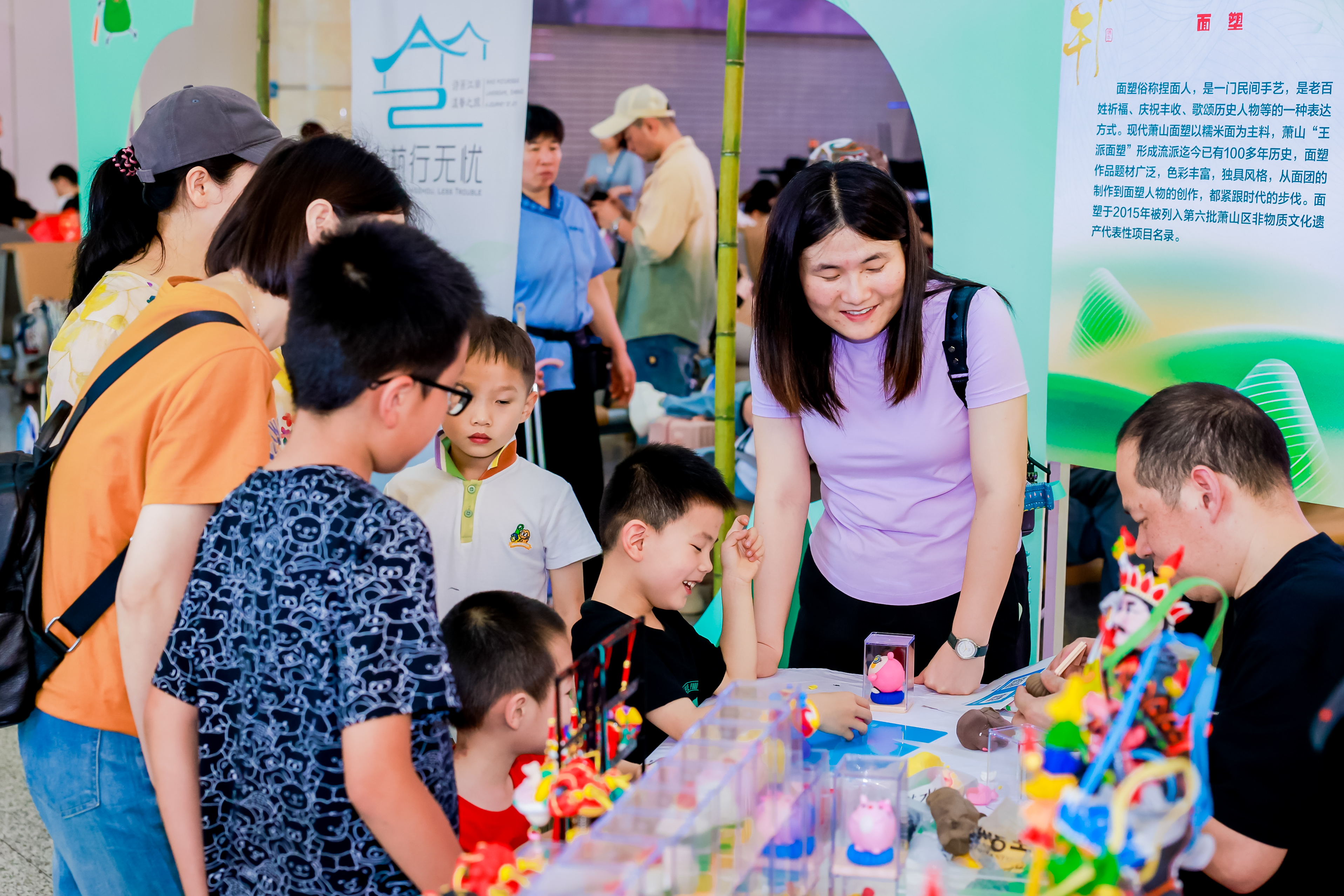 此次活動以互動體驗為主題,邀請來自蕭山區(qū)文化館的6位非遺技藝傳承人與旅客分享極具地域文化烙印的傳統(tǒng)非遺手工制作,為端午來杭旅游的客人留下珍貴的“最終回憶”。
