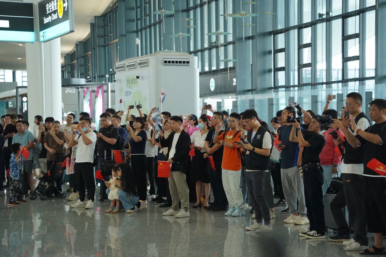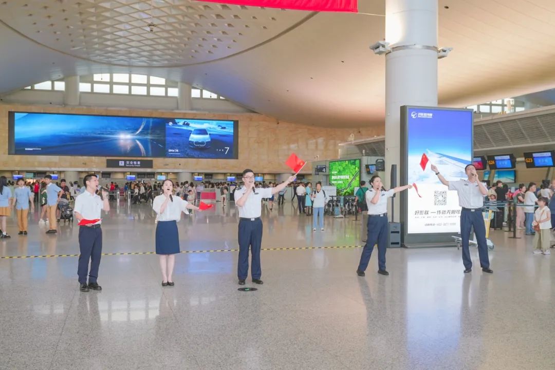活動(dòng)最后,旅客們紛紛加入《我和我的祖國(guó)》的大合唱中,揮動(dòng)著手中的國(guó)旗,深情應(yīng)和,盡情抒發(fā)心中對(duì)祖國(guó)的熱愛(ài),向祖國(guó)母親獻(xiàn)上最真摯的祝福。