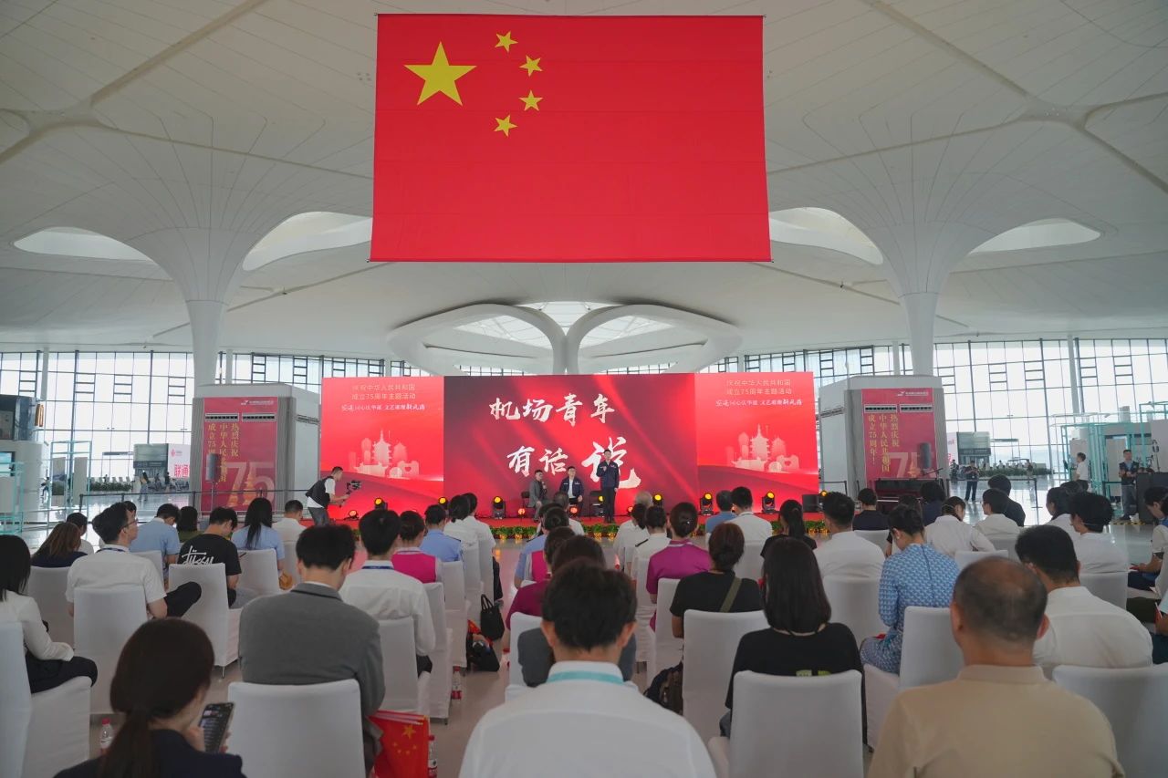 在T4出發(fā)大廳中庭的舞臺(tái)上,“禮贊偉大祖國(guó)”歌詠活動(dòng)熱烈展開(kāi)。來(lái)自省機(jī)場(chǎng)集團(tuán)和省交通集團(tuán)的青年宣講員們,正用清朗悅耳、直抵人心的“青春之聲”告白祖國(guó),讓人眼前一亮、心頭一暖。他們談青春感悟、話產(chǎn)業(yè)變革、學(xué)先輩楷模,從一個(gè)個(gè)小切口、小場(chǎng)景、小案例出發(fā),娓娓道來(lái)、深入淺出,讓蓬勃青春與偉大時(shí)代交相輝映。