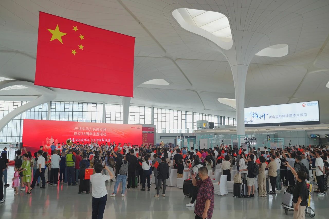 9月30日上午9點(diǎn),《今天是你的生日,我的中國(guó)》旋律在杭州機(jī)場(chǎng)T3悠揚(yáng)響起,引得來(lái)往旅客紛紛駐足聆聽(tīng)。由省機(jī)場(chǎng)集團(tuán)、省交通集團(tuán)、浙江音樂(lè)學(xué)院和杭州機(jī)場(chǎng)駐樓單位聯(lián)袂打造的“慶生派對(duì)”就此拉開(kāi)序幕,慶祝中華人民共和國(guó)成立75周年,弘揚(yáng)空港新風(fēng)尚。