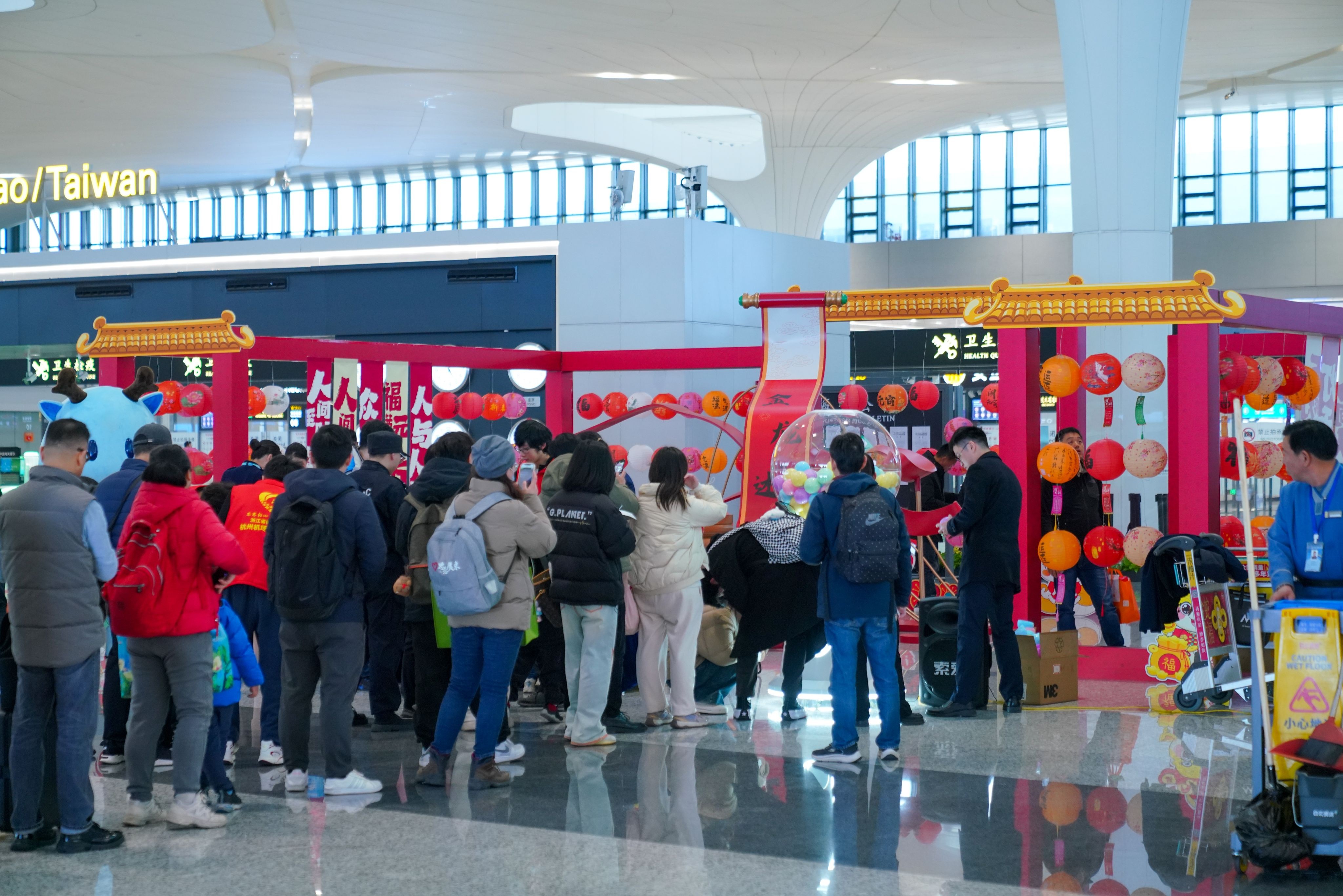正值元宵佳節(jié),T4出發(fā)大廳預(yù)安檢兩側(cè)熱鬧非凡。上午9時(shí),伴隨著喜慶的音樂,活動正式拉開帷幕?;顒蝇F(xiàn)場,一臺嶄新的扭蛋機(jī)最為吸引人群聚集,參與者紛紛投入游戲幣、轉(zhuǎn)動機(jī)器開關(guān),期待著本場最大的獎(jiǎng)項(xiàng)——飛機(jī)機(jī)模與茶壺。