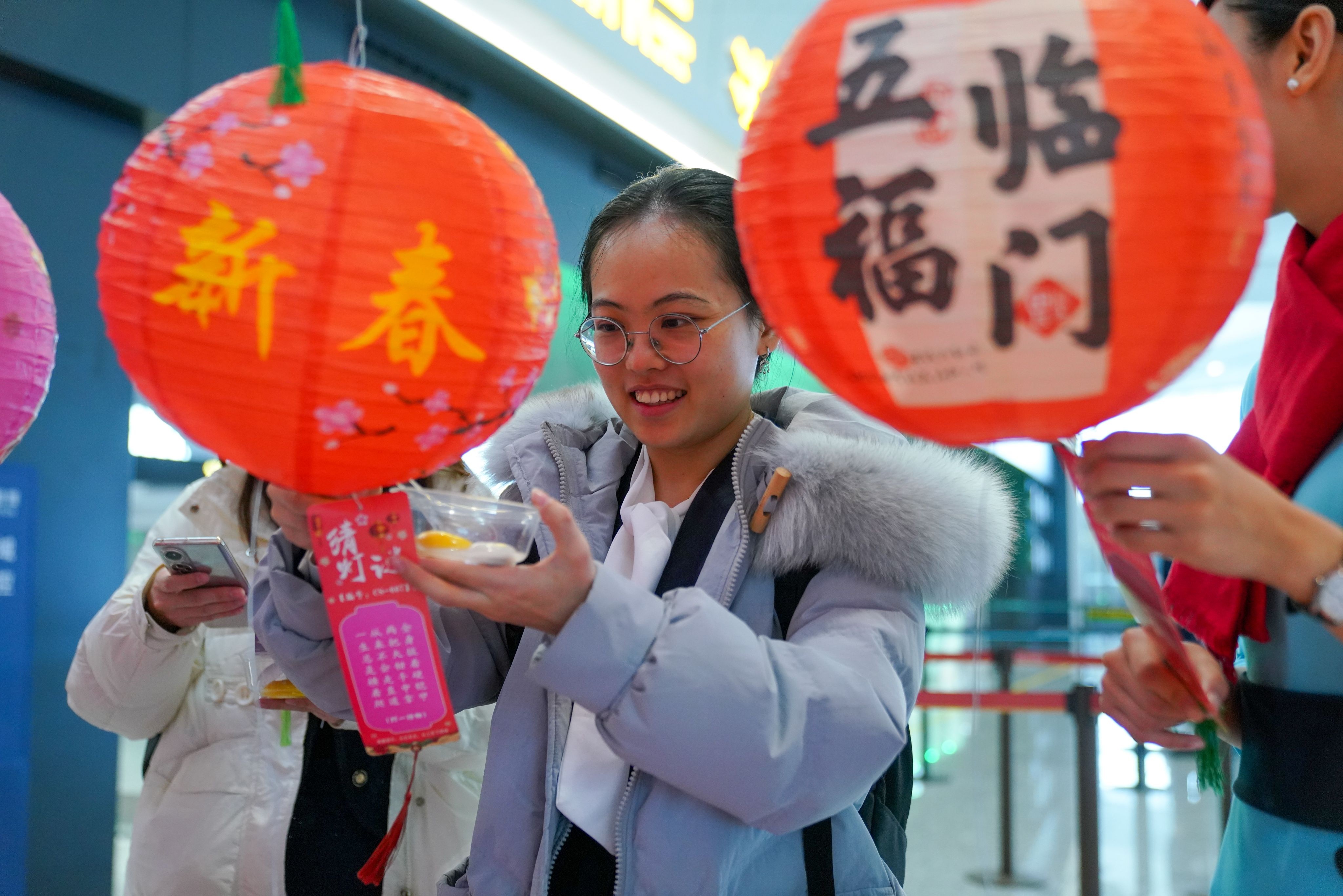 本次活動共設(shè)置三個(gè)獎(jiǎng)項(xiàng),共計(jì)350個(gè)獎(jiǎng)品。參與者需先在兩處花燈墻選取自己有把握的燈謎,摘取謎紙后前往兌獎(jiǎng)處核實(shí)答案,答對即可獲得一個(gè)游戲幣參與抽獎(jiǎng)活動?,F(xiàn)場精美的花燈也吸引旅客們紛紛駐足,一邊賞燈、一邊猜燈謎,現(xiàn)場歡聲笑語不斷。小朋友們更是興奮不已,他們在家長的陪伴下,積極參與猜燈謎活動,享受著這份獨(dú)特的節(jié)日樂趣。