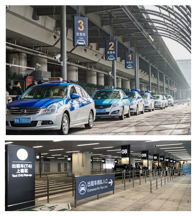 杭州蕭山國(guó)際機(jī)場(chǎng)共有2處出租車專用上客區(qū),其中:
